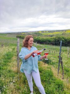 Sie bringt ihre Leidenschaft für Wein aus Rheinhessen mit ins Rheinland und arbeitet ausschließlich mit kleinen Familienbetrieben, die sie persönlich kennt.