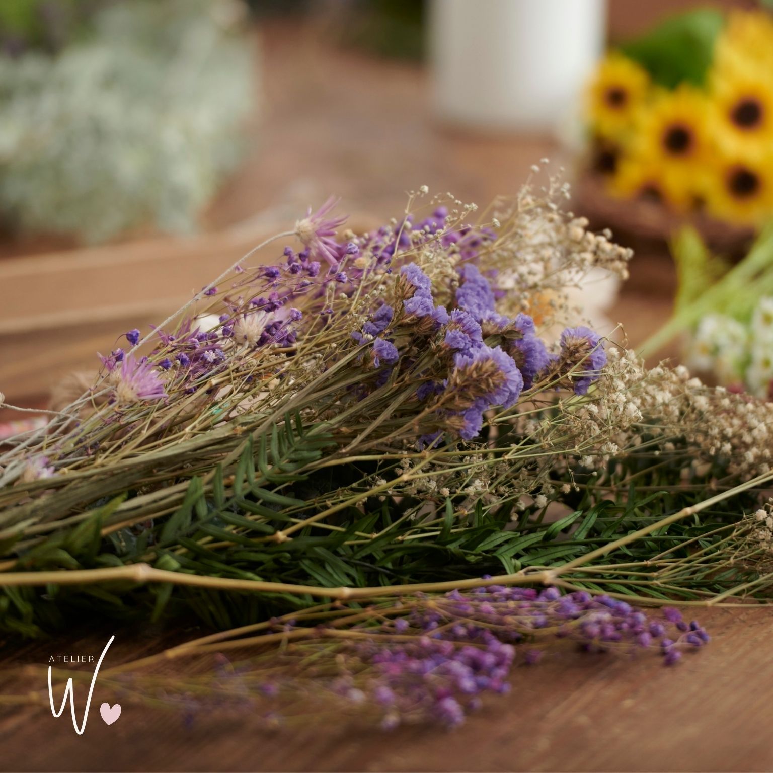 Flower Workshops im Atelier Wundervoll drehen sich um das kreative Gestalten mit Trockenblumen.