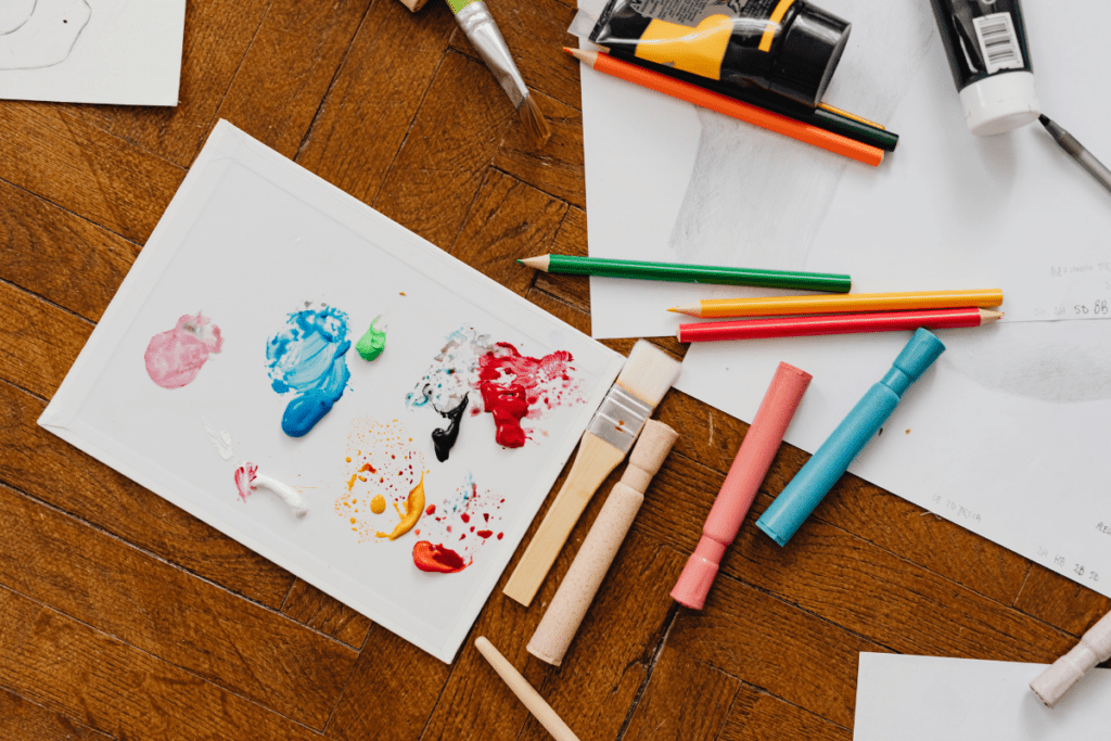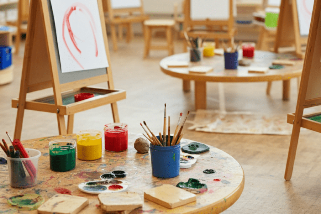 Alle Materialien sind inklusive – hochwertige Acrylfarben, Pinsel, Leinwände und alles, was zum Malen gebraucht wird. Dein Kind muss nichts mitbringen.